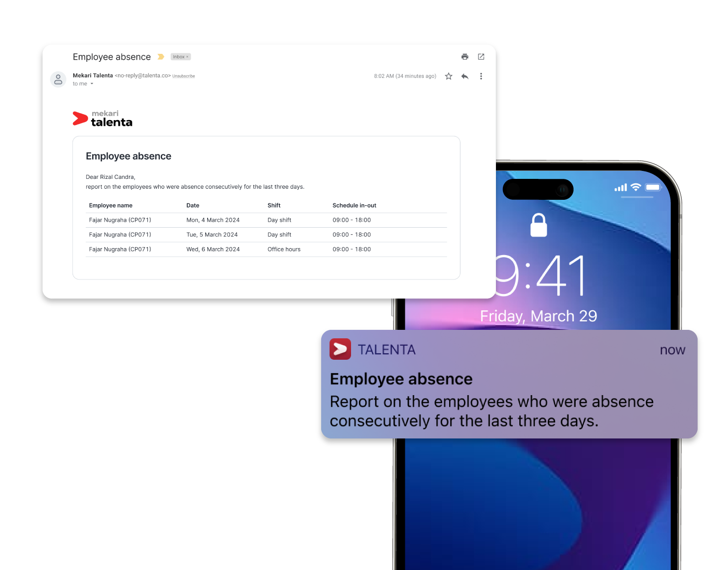 Karyawan juga dapat mengunduh aplikasi Mekari Talenta melalui smartphone untuk kebutuhan aplikasi absensi online dan juga pengajuan jadwal kerja,