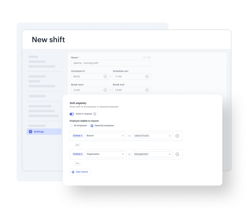 Selain itu, Mekari Talenta juga disematkan dengan fitur shift scheduling untuk mengatur shift kerja karyawan dengan mudah.