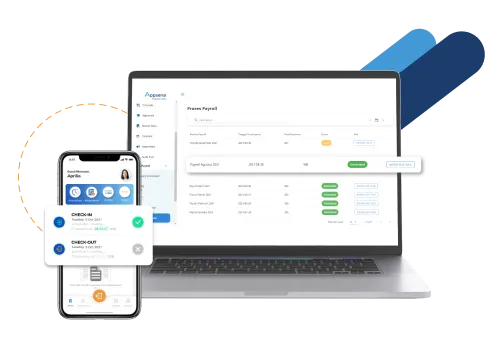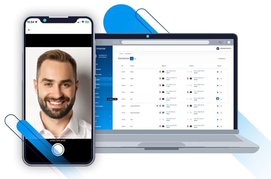 - Absensi Online & Mobile: Karyawan dapat melakukan check-in dan check-out melalui aplikasi mobile dengan GPS dan fitur deteksi muka, memastikan data absensi yang akurat.