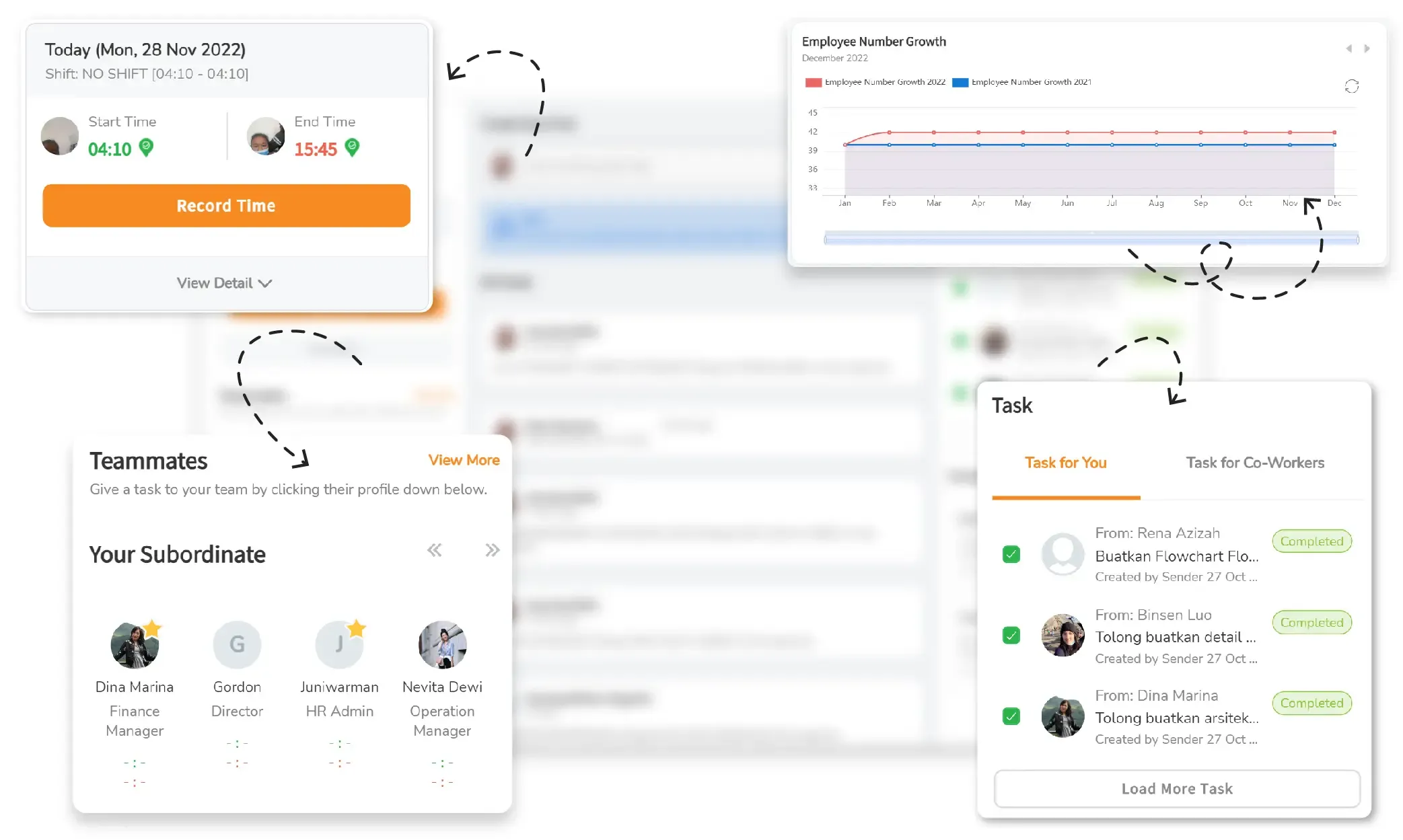 Misalnya manajemen absensi, manajemen payroll, manajemen rekrutmen karyawan, hingga manajemen performa karyawan.
