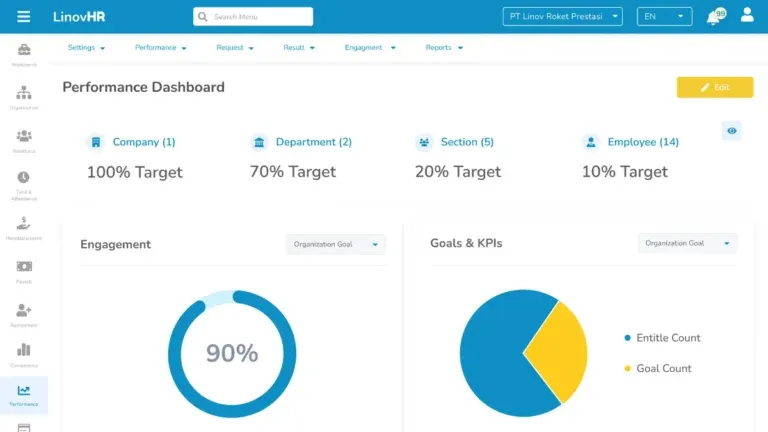 - Performance Management: Memfasilitasi proses penilaian kinerja karyawan, penetapan tujuan, dan feedback untuk pengembangan karyawan.