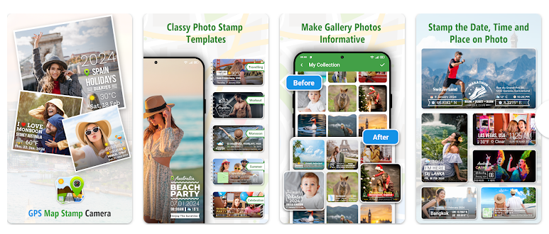 GPS Map Stamp Camera memudahkan verifikasi lokasi melalui cap koordinat dan informasi cuaca.