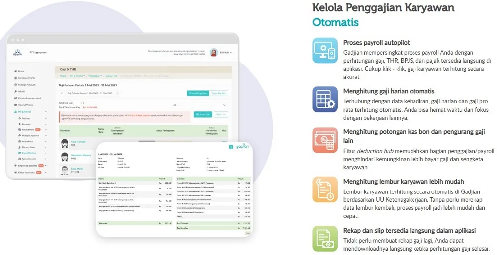- Slip Gaji Digital: Menyediakan slip gaji elektronik yang mudah diakses karyawan.