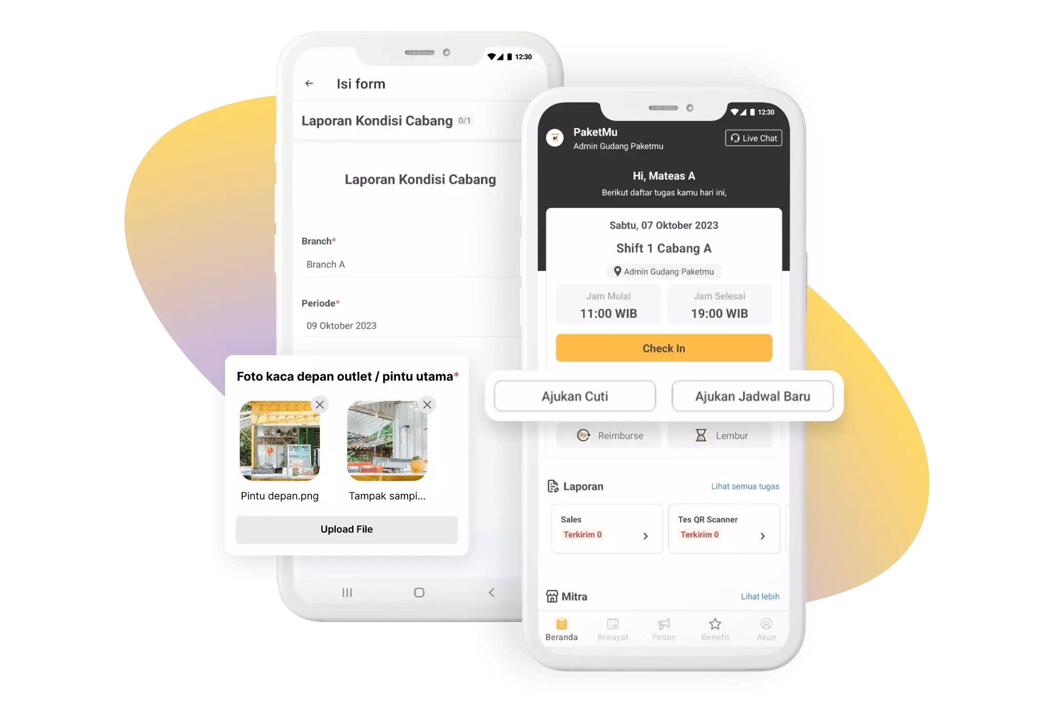 - Pengajuan Izin/Cuti: Memudahkan karyawan mengajukan permohonan.
