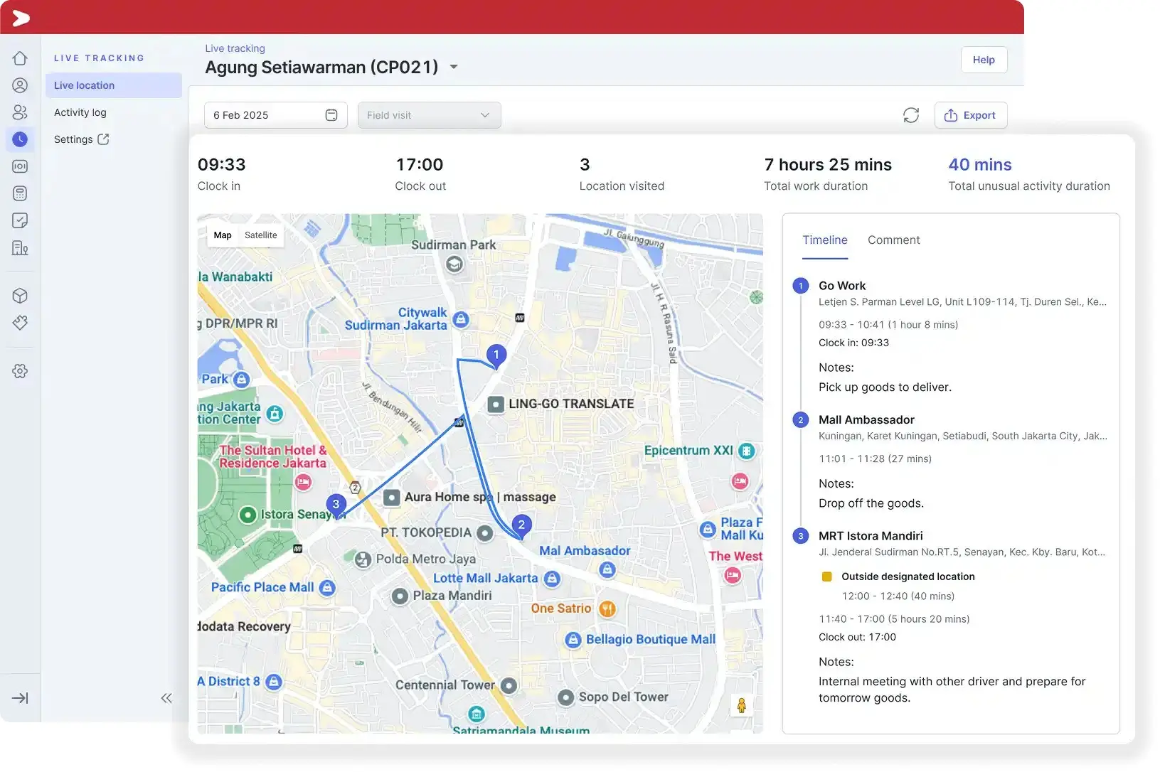 live tracking location Mekari Talenta