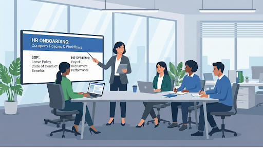Pelatihan onboarding karyawan ini ditujukan agar anggota HR baru memahami sistem kerja, kebijakan internal, serta alur administrasi perusahaan. Program ini memastikan mereka dapat langsung menjalankan tugasnya dengan standar yang sama sejak awal.