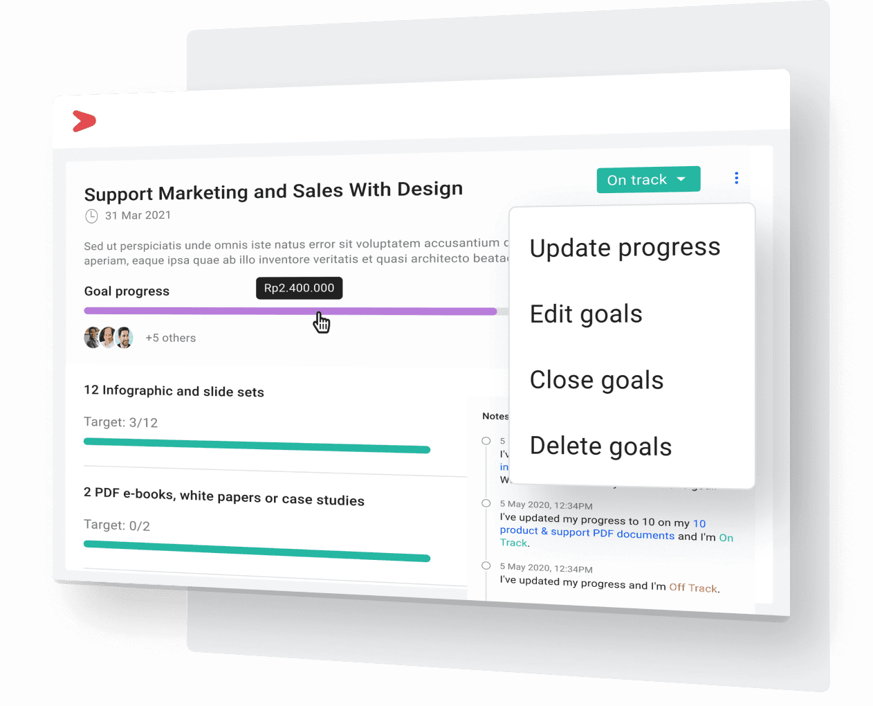 - OKRs (Objectives and Key Results): Fitur ini memudahkan perusahaan menyelaraskan tujuan strategis dengan target tiap tim atau individu. OKRs dapat diperbarui dan disesuaikan sesuai perkembangan bisnis.