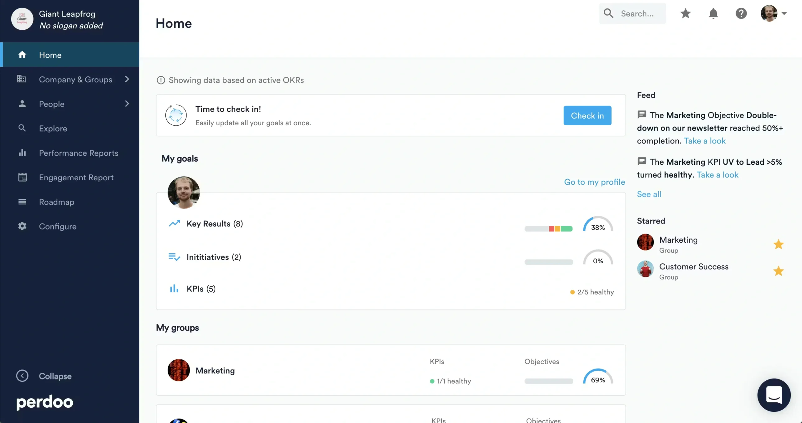 Perdoo adalah software KPI dan OKR berbasis cloud yang membantu perusahaan menetapkan, memantau, dan menyelaraskan tujuan strategis dengan kinerja tim dalam satu platform terintegrasi.
